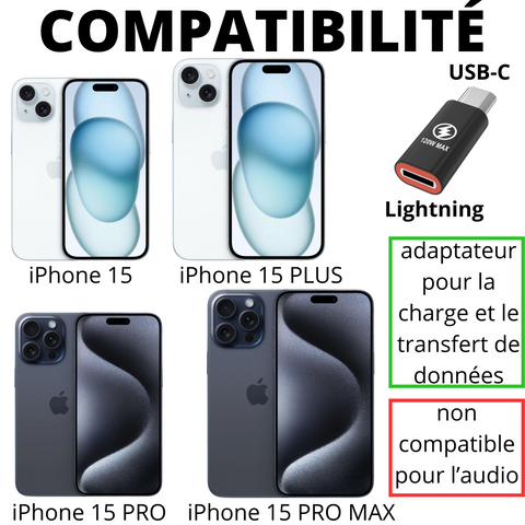 • Compatibilité :  Apple iPhone 15 / iPhone 15 PLUS / iPhone 15 PRO / iPhone 15 PRO MAX